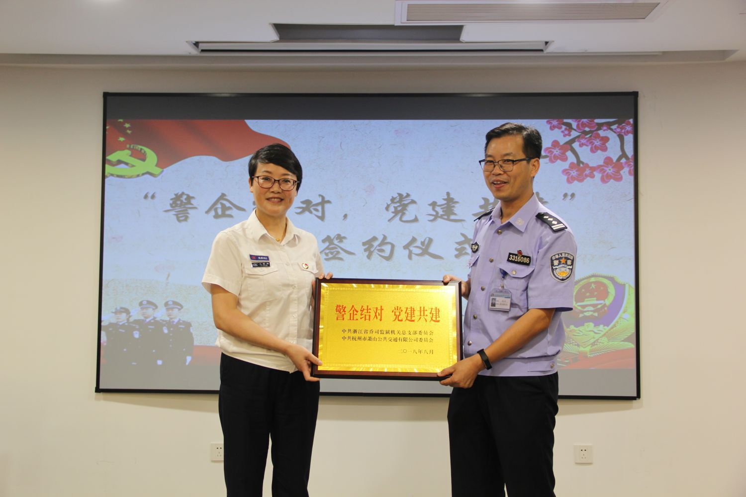 活動(dòng)中,全體黨員干部在監(jiān)獄陳列館內(nèi)進(jìn)行了參觀,隨后集體組織觀看廉政教育視頻短片。結(jié)對(duì)簽約儀式上,省喬司監(jiān)獄黨委委員、副監(jiān)獄長(zhǎng)胡忠南作致辭,政治處副主任周立功宣讀了黨建結(jié)對(duì)共建內(nèi)容;蕭山公交黨委書(shū)記王黎洪和周副主任現(xiàn)場(chǎng)簽訂了《黨建結(jié)對(duì)共建協(xié)議書(shū)》,并互贈(zèng)共建牌匾。儀式最后,公司吳根法董事長(zhǎng)與王黎洪書(shū)記分別作了總結(jié)發(fā)言。