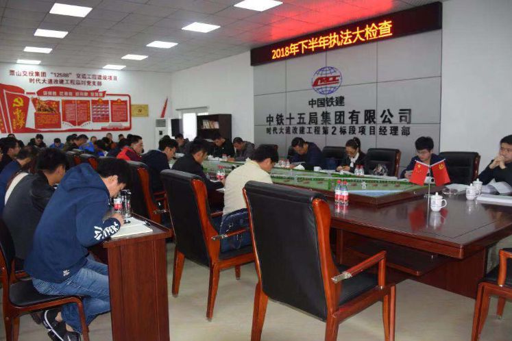 11月12日上午,時代大道改建工程和03省道蕭山義橋至樓塔段改建工程2018年下半年執法大檢查預備會于時代大道II標項目部召開。檢查組由杭州市交通工程質量安全監督局副局長吳明帶隊,杭州蕭山交通建設管理有限公司常務副總徐全民、副總經理龔鐵峰等參會。