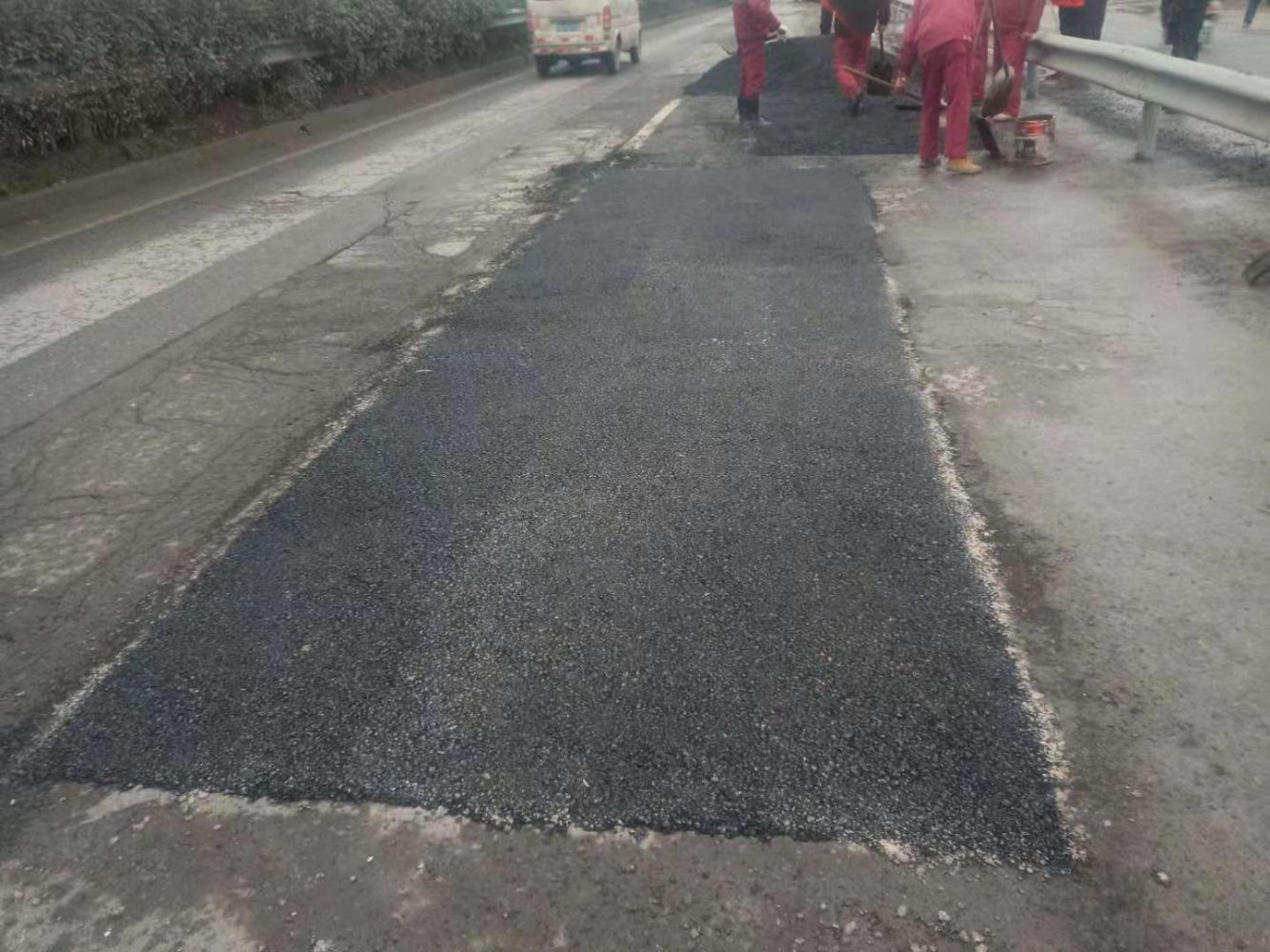等到11日天氣稍有轉(zhuǎn)好,集團立即組織施工力量對紅十五全線路面進行巡查,并對路面破損嚴重及坑洞路段采取銑刨后加鋪瀝青修補的方案進行路面修復(fù),共計投入物資熱拌瀝青混凝土600余噸,投入安全巡邏車、銑刨機、鏟車、挖機、壓路機、運輸輛共30余臺套,出動應(yīng)急人員100余人,累計投入資金達百萬元以上。