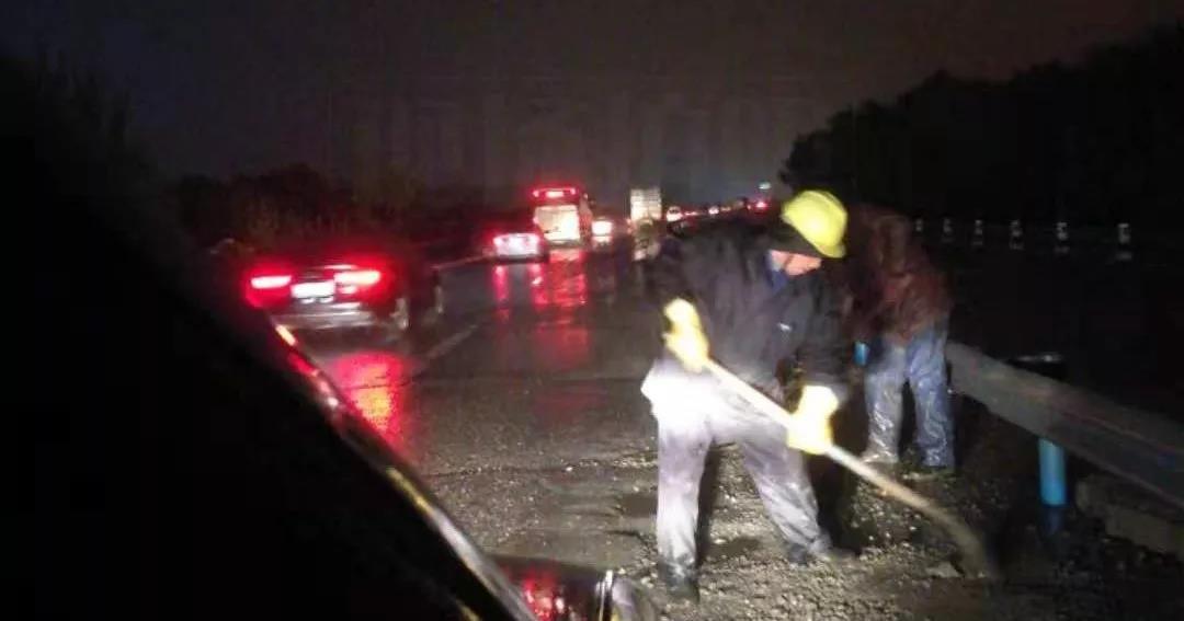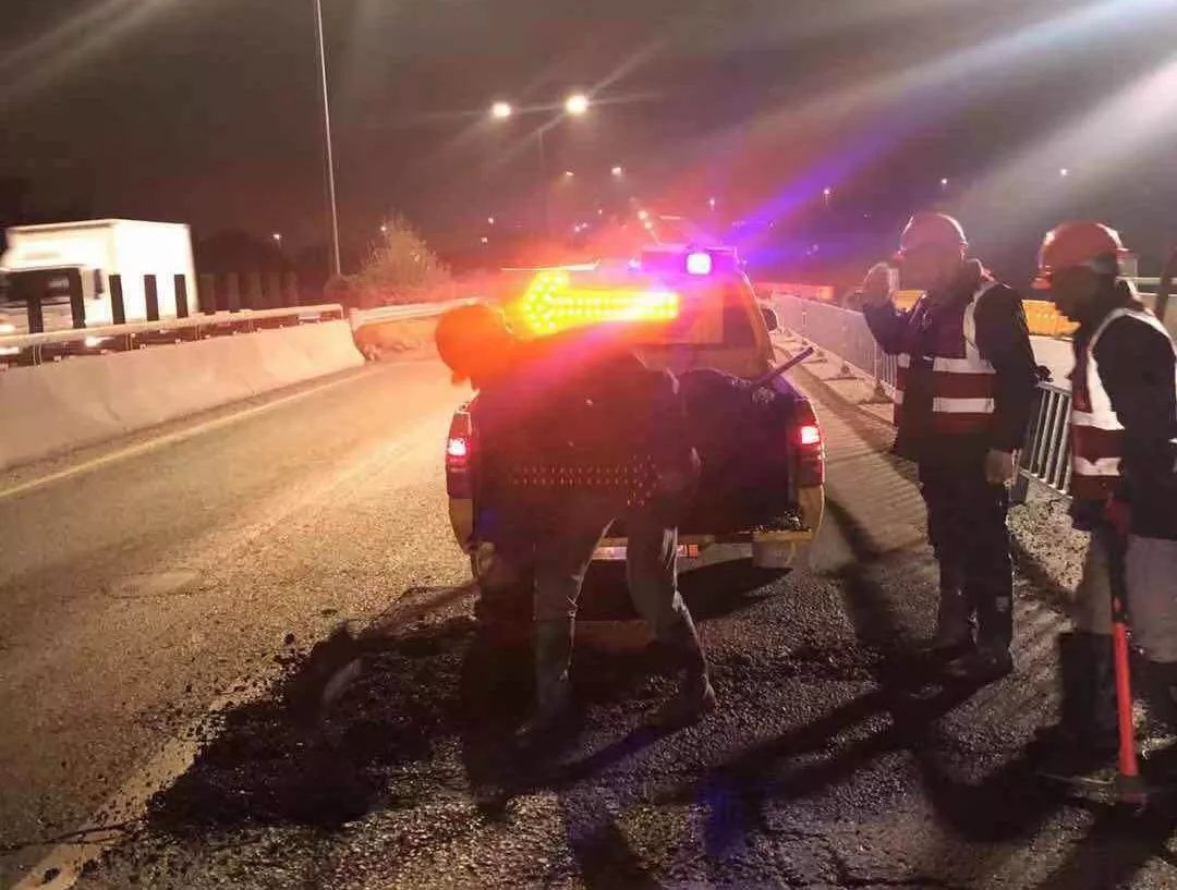 9日大雪,集團各部門第一時間啟動雨雪天氣應(yīng)急預(yù)案,增加了應(yīng)急保障力量,進行24小時巡查,對路面坑洞進行修補及除雪除冰。考慮到天氣、重荷載車輛多等因素,采用了水泥穩(wěn)定碎石混合料、瀝青冷料等進行臨時修補,同時增設(shè)警示標志,確保道路正常有序通行。期間,共投入物資有工業(yè)鹽16噸、草袋1500個、瀝青混凝土冷料26噸、水泥穩(wěn)定碎石干拌料50噸、快干水泥8噸、錐形帽500個、警示燈230個;投入安全巡邏車、鏟車、挖機、運輸車輛等機械設(shè)備共17臺(套);
